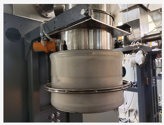 في هذا الوقت ، يتحقق النظام مما إذا كان جهاز تثبيت الكيس في الحالة المحددة مسبقًا ، عندما يتم تثبيت كيس التغليف ، يرسل النظام إشارة تحكم لفتح باب التفريغ لحاوية الوزن ، وتدخل المادة إلى كيس التغليف.