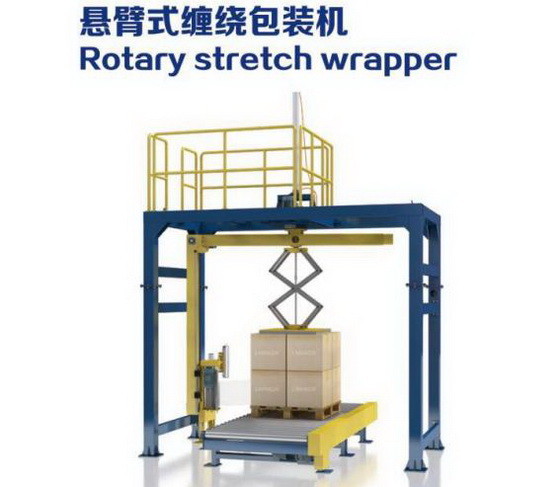 يمر صندوق الشحن عبر ناقل موضع الانتظار للناقل.عندما يتم الكشف عن الوظيفة الشاغرة لآلة اللف ، تتوقف البضائع ، ويتم اعتماد الرافعة الأوتوماتيكية الهوائية (اختياري).تقوم آلة اللف بتحميل الفيلم تلقائيًا وتلف الفيلم العلوي.تتم عملية اللف وفقًا للإجراء المحدد حتى يتم الانتهاء من اللف ويتم كسر الفيلم تلقائيًا.ثم يتم نقل البضائع إلى الناقلين الدوارة في اتجاه المحطة ، في انتظار الرافعة الشوكية ، والتعبئة المنتهية.