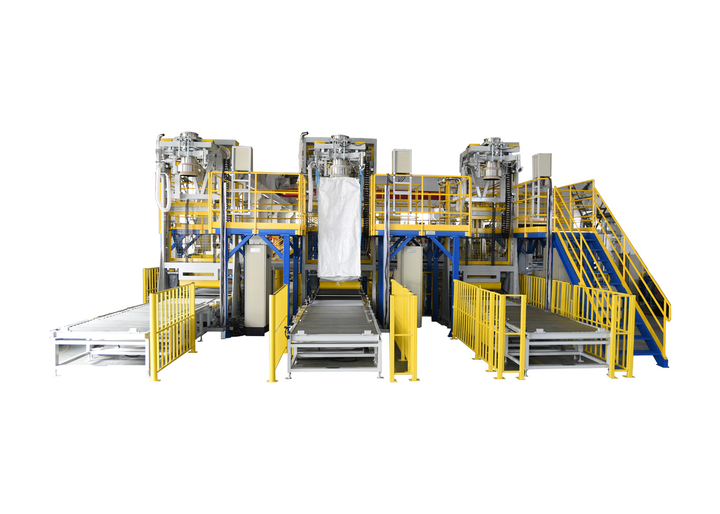 وضع الأكياس يدويًا -> الملء التلقائي -> الوزن التلقائي -> التفريغ التلقائي للكيس -> نقل الأكياس الكبيرة -> الجولة التالية