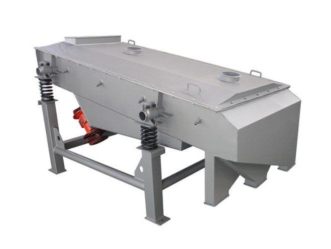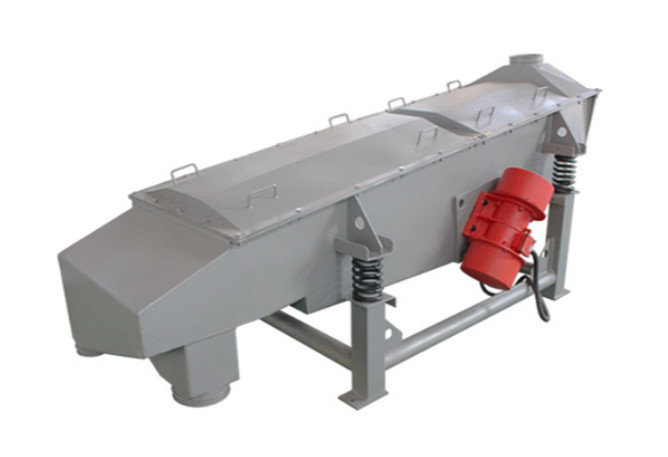 تم تصميم الغربال الاهتزازي الخطي بمحرك مزدوج الاهتزاز. عندما يدور محركان اهتزازان بشكل عكسي بشكل متزامن ، ينتج اللامتراكز قوة مثيرة لإزاحة بعضهما البعض على الاتجاه الموازي لمحور المحرك ، ويتراكم مع الاتجاه العمودي لمحور المحرك ، لذلك مسارها خطي ، وهناك انحدار على سطح الشاشة حيث يتجه عمودان للمحرك ، مع التأثير المشترك لقوة الاهتزاز والجاذبية الذاتية للمواد ، سيتم قذف المواد الموجودة على سطح الشاشة إلى الأمام في حركة مستقيمة ، وبالتالي يمكن فحص المواد والدرجات.