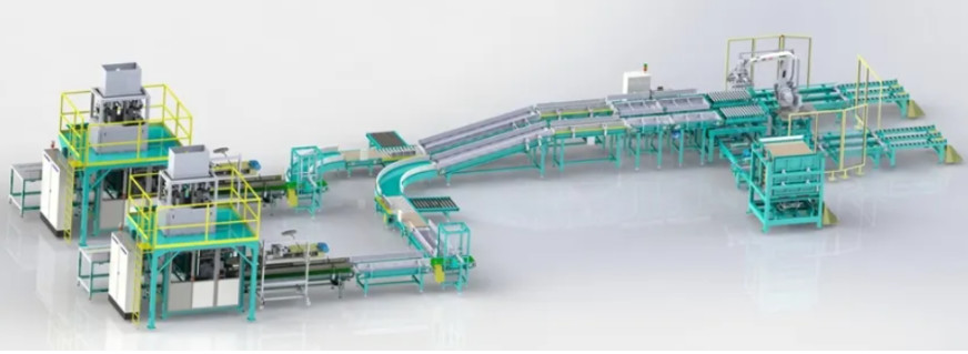 2. خط تعبئة وتغليف أوتوماتيكي سعة 25 كجم (كيس نوع الصمام) ،